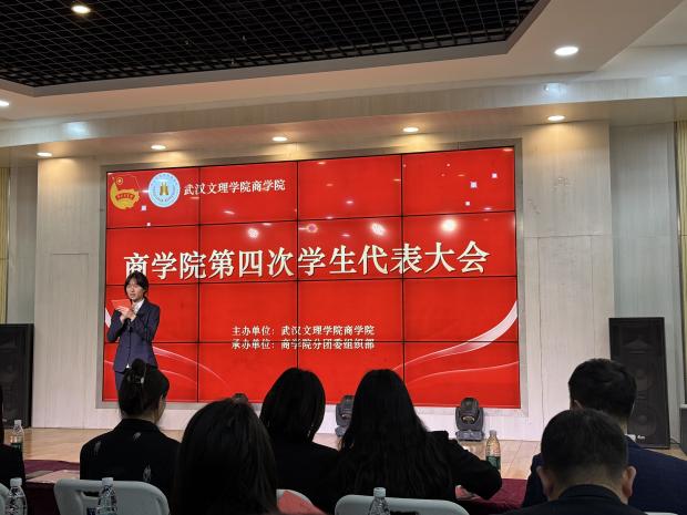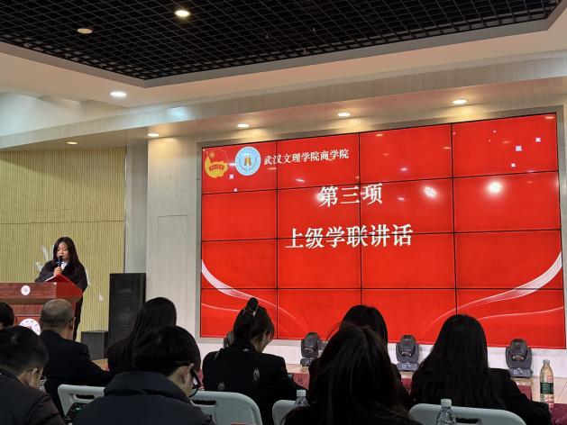 接着,上级学联代表刘琳登台发言。她代表上级学联对大会的召开表示热烈祝贺,并转达了上级学联对全院同学的亲切问候。在讲话中,她高度赞许6776永利集团学生会在思想引领、组织建设及服务同学等方面取得的扎实成效,为全校学生组织工作提供了宝贵经验。