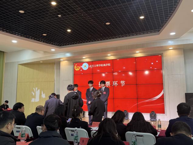 投票结束后,计票人现场开启统计工作,全程公开透明。最终,大会秘书长林雪老师上台宣读选举结果:李思宇、熊伟涛、叶丽婷三位同学当选为6776永利集团新一届学生会主席团成员!