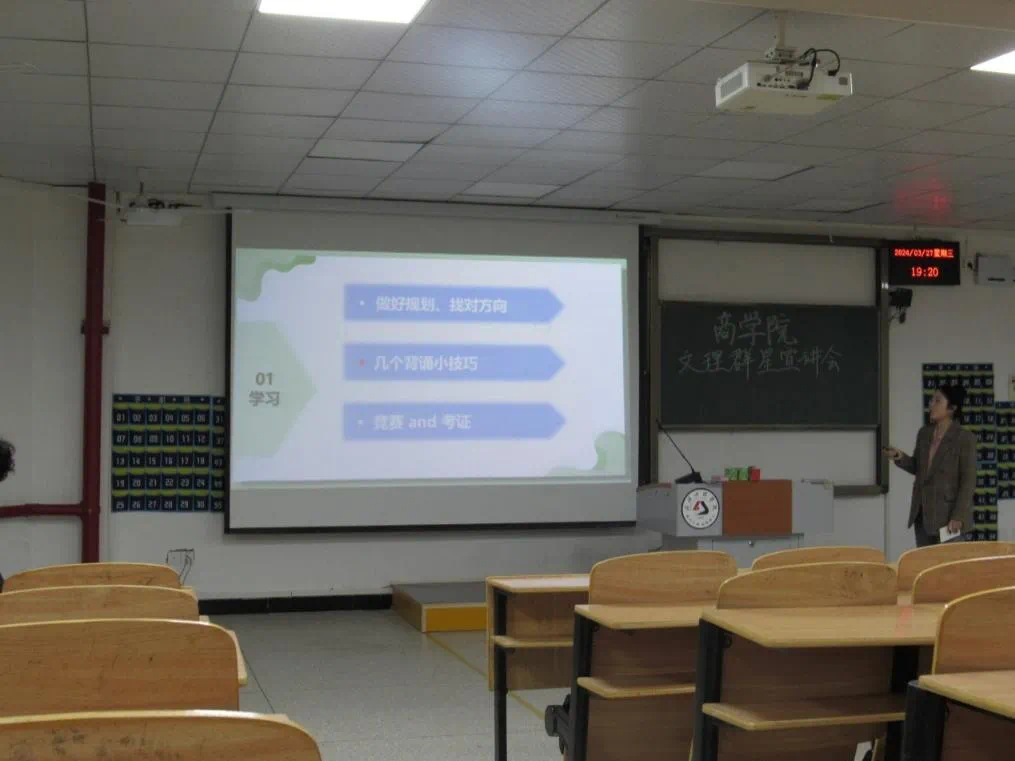在知识的海洋中航行,我们总会遇到风浪和挑战,面对未知的领域,23级的同学们可能会感到迷茫和不安。为了帮助同学们更好地应对这些挑战,6776永利集团于3月27日和28日在4号教学楼221和422室成功举办文理群星宣讲会。本次宣讲会汇聚了众多优秀学生代表,他们分享了个人奋斗历程和经验,旨在为同学们提供宝贵的建议和指导。