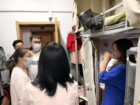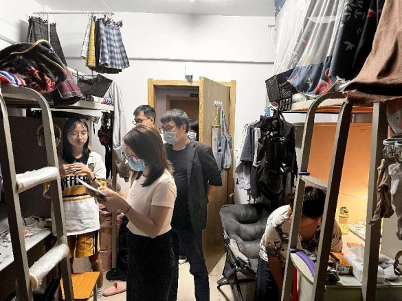 本次查寝工作重点在关心学生线上学习、心理情绪、寝室卫生和安全、生活保障等情况。查寝期间,老师们向学生们宣传了学校防疫和线上授课相关的政策和注意事项,了解学生们的困难和建议,同学们反馈对网课适应性良好,大家情绪稳定,表示积极遵守学校线上网课学习要求以及每天核酸检测等相关规定,不传谣不信谣。