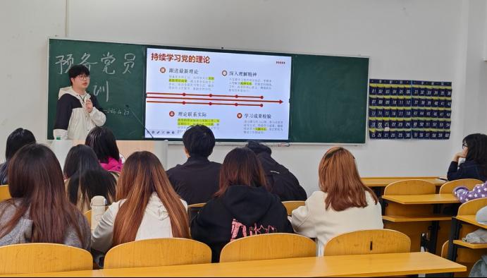 在党课第一讲中,周子豪围绕“预备党员的教育、考察和转正”这一主题展开讲解。他从预备党员的培养教育要求、组织考察的主要内容和方式、转正程序及注意事项等方面进行了系统梳理,重点解读了预备期内的行为规范与考核标准。他强调,预备期既是政治考察期,也是实践锻炼期,既要在思想上持续深化对党的认识,也要在实际行动中经得起检验。全体预备党员要严格对照党员标准,主动接受组织监督,在学习、工作和日常生活中发挥先锋模范作用,为按期转正打下坚实基础。