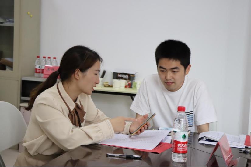 国际经济与贸易系主任汪笛晚与国际经济与贸易专业负责人李昕讨论交流