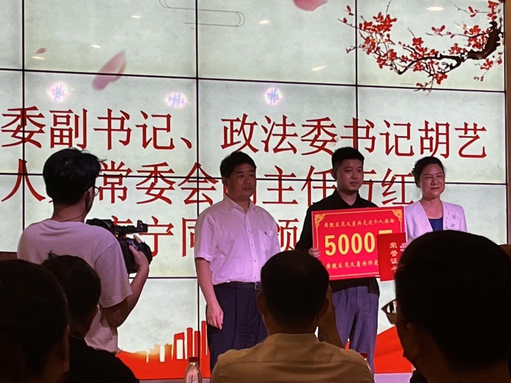 武汉市黄陂区委政法委6月17日对yl6776永利集团法学专业大四年级学生康宁授予“黄陂区见义勇为先进个人”荣誉称号。