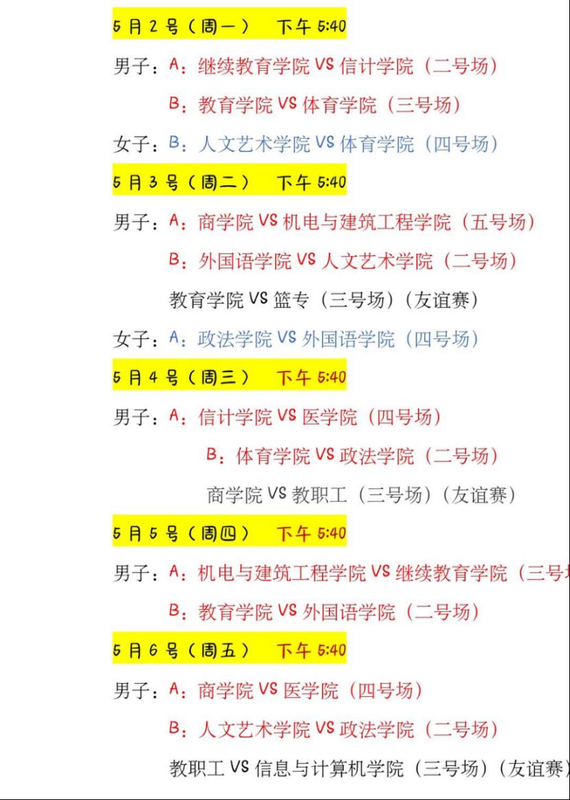 附:5月份第一周男女队比赛安排(因天气等因素情况,准确信息以当天通知为准)