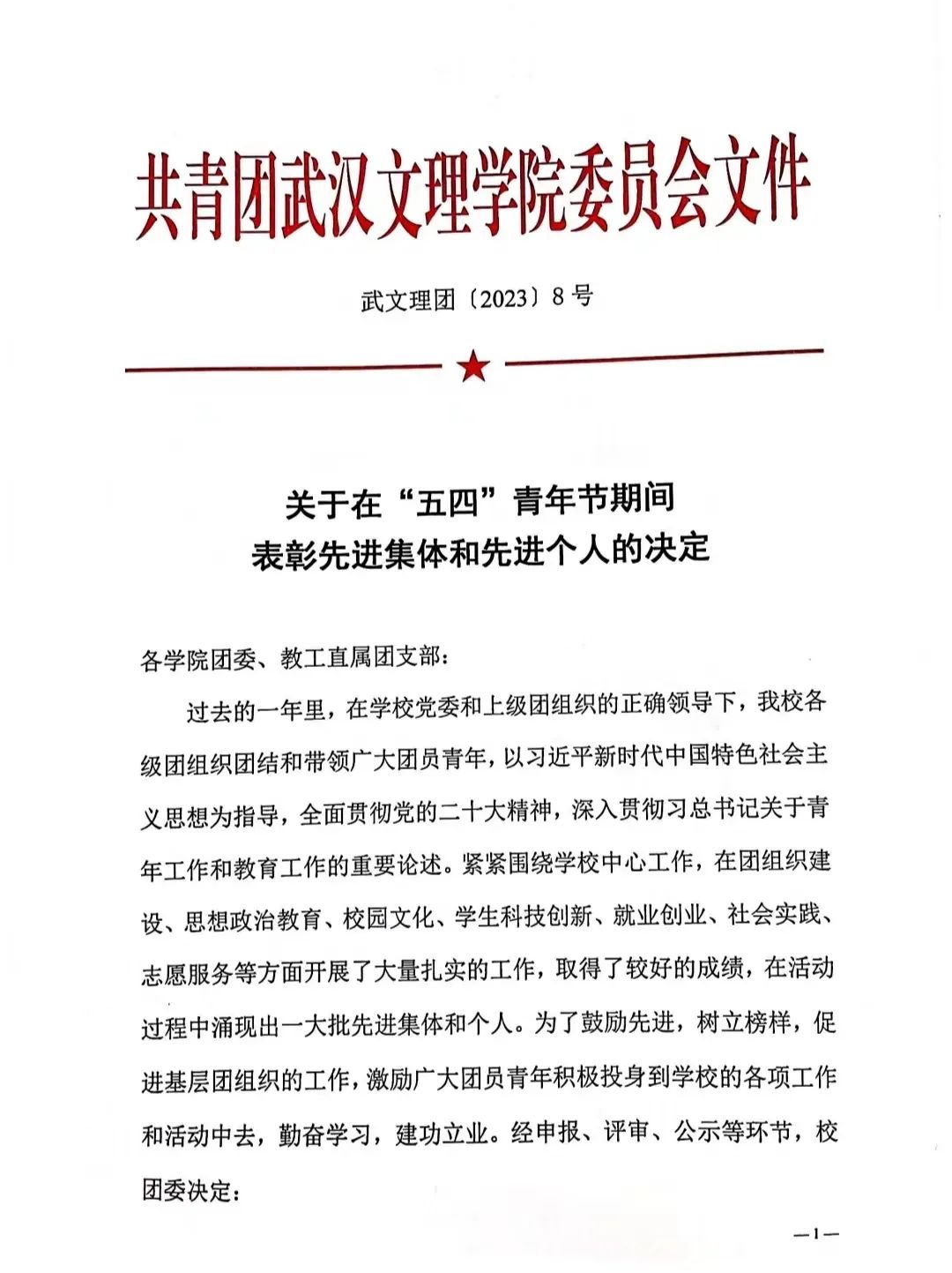 过去的一年里,在学校党委和上级团组织的正确领导下,我校各级团组织团结和带领广大团员青年,以习近平新时代中国特色社会主义思想为指导,全面贯彻党的二十大精神,深入贯彻习总书记关于青年工作和教育工作的重要论述。紧紧围绕学校中心工作,在团组织建设、思想政治教育、校园文化、学生科技创新、就业创业、社会实践、志愿服务等方面开展了大量扎实的工作,取得了较好的成绩,在活动过程中涌现出一大批先进集体和个人。为了鼓励先进,树立榜样,促进基层团组织的工作,激励广大团员青年积极投身到学校的各项工作和活动中去,勤奋学习,建功立业。经申报、评审、公示等环节,校团委决定: