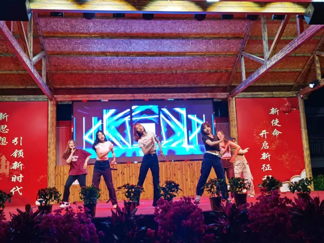为深化共青团实践育人工作,增强新时代大学生社会实践活动实效,加强校地双向赋能、共同发展,4月29日,校团委组织62名学生赴十堰市房县白鹤镇举办了“庆双节青春阵地校地交流互动”文艺展演。房县各级领导、白鹤镇1000余名百姓们观摩了此次展演。