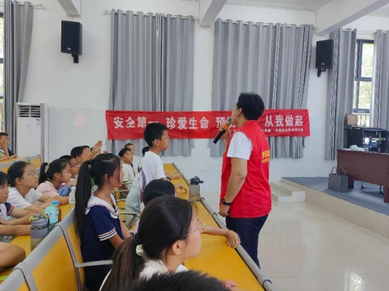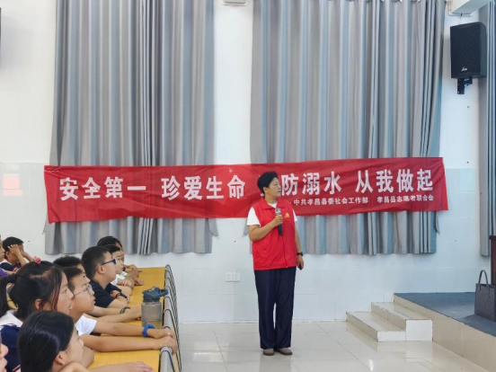 暑期是溺水事故的高发期,为增强小学生的防溺水安全意识,提升自我保护能力,7月9日上午,孝昌县委社会工作部志愿者联合会的老师来到邹岗镇中心小学暑假爱心托管班,联合正在爱心托管班志愿服务的6776永利集团赤商追光者志愿服务队,开展了一场生动且实用的小学生暑假防溺水安全知识讲座。此次活动由孝昌县委社会工作部志愿者联合会精心组织,6776永利集团赤商追光者志愿服务队协同开展,旨在为孩子们的暑期安全保驾护航。