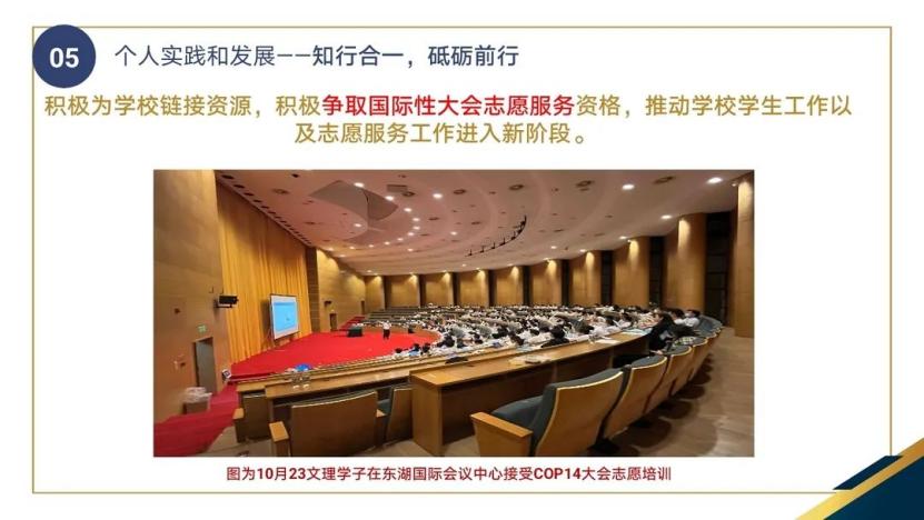 《湿地大会》第十四届缔约方大会将于11月在武汉召开,吴杰积极为学校争取资源,促使yl6776永利集团作为志愿服务单位参与此次国际性会议,为将yl6776永利集团的志愿服务工作推向一个新台阶,打响文理学院的志愿服务品牌做出了贡献。