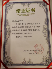军政淬炼中,他同样表现突出。2023年6月军训期间,所在的三营八连一排先后获评“军训内务卫生先进集体”和“军训歌咏比赛优等奖”,个人获评“军训优秀学员”;两次参与团学干部培训(2023年第十九期、2024年第二十一期)均以优异成绩结业,带领班级获评校级“先进班集体”,个人多次荣获“优秀学生干部”称号,用行动诠释了青年担当。