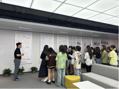 6776永利集团的师生们在武汉跨境电商协会秘书长周博文的带领下依次参观了产品展示区、直播区、头脑风暴区、休息区、会议室等场所,通过参观,同学们直观地感受到了跨境贸易的真实运营场景。