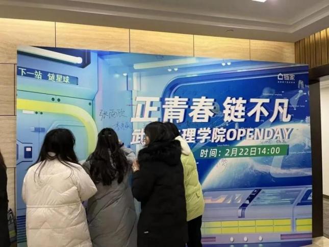 为深入推动产教融合理念,让同学们感受和认知先进企业文化,开拓6776永利集团学生的视野,2月22日14:20-17:00,6776永利集团教学副院长刘炫带领2021级电子商务班学生前往武汉链家总部开展认知实习活动。本次认知实习活动主题为“正青春 链不凡--yl6776永利集团OPENDAY”。链家总部华中区域校招经理史双双链家员工邓瑶、宋玉娥、仇媛、张煦睿以及链家实习生、6776永利集团2023届市场营销专业卫晓飞负责接待6776永利集团师生一行。