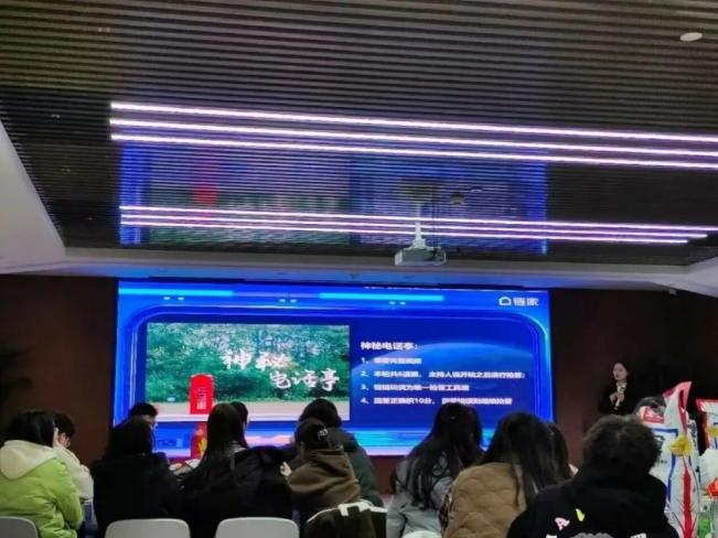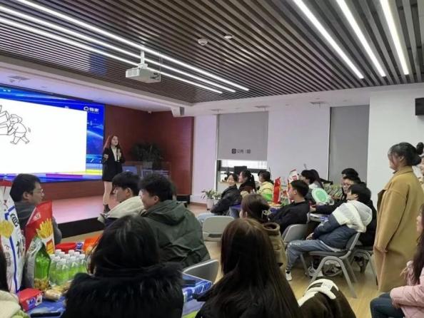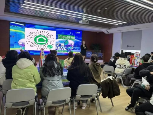 15:30,6776永利集团师生来到链家总部会议室参加企业文化介绍和互动交流活动。在史双双经理的精心组织下,学生通过签名和趣味城市分组的方式分成9人三组在会议室依组入座,在听取企业文化介绍期间穿插游戏互动和看视频答题环节。