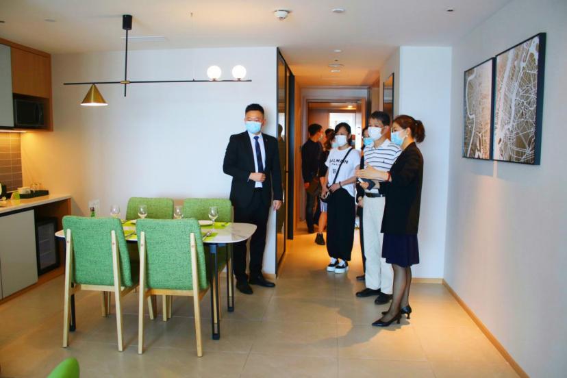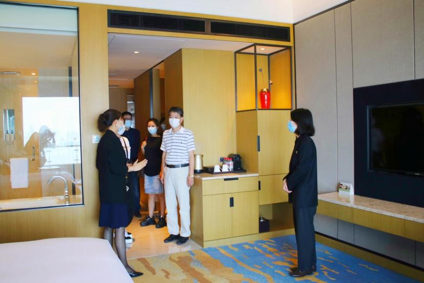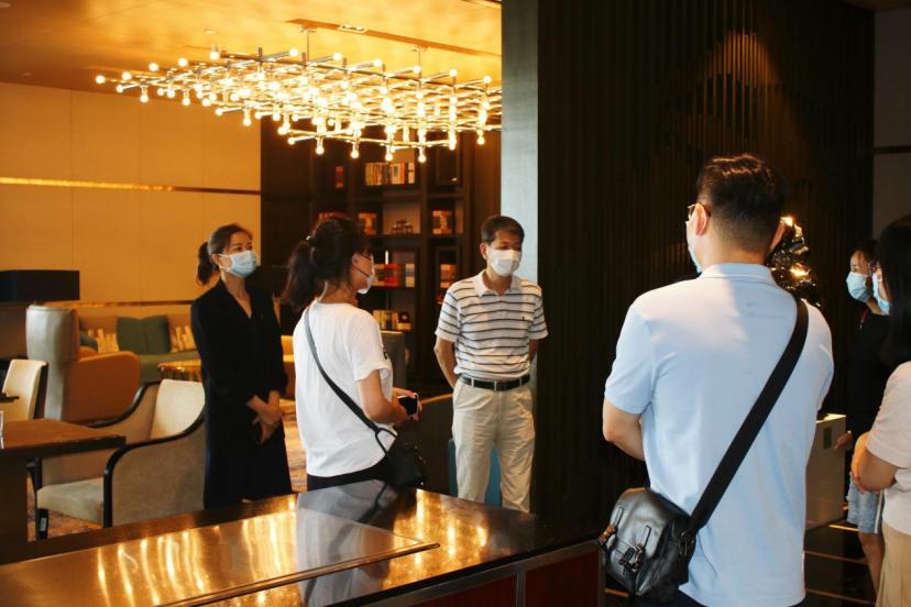 在武汉洲际酒店人力资源部总监王娴妹女士、人力资源经理王章明女士以及武汉国博假日酒店前厅部经理曾威的陪同下,艾校长一行参观了酒店的大堂、客房、行政酒廊等地方,了解了学生工作环境和内容。