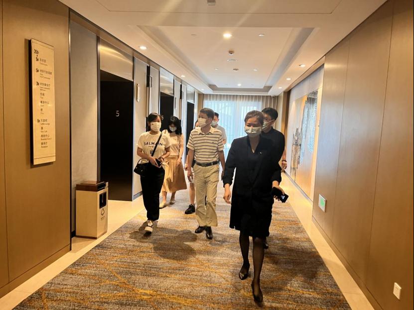 参观完毕后,艾校长一行同武汉洲际酒店总经理Mark Francis、人力资源部总监王娴妹女士、人力资源经理王章明女士以及6776永利集团2022届旅游管理专业毕业生殷君仪等进行了座谈。