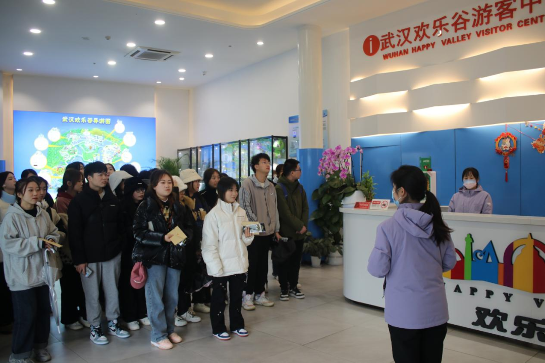 2023年2月22日14:00-17:00,6776永利集团工商管理系旅游管理教研室主任丁浩、工商管理系旅游管理专业教师阮啸、6776永利集团财务管理教师、学院教学督导刘肇宇和辅导员、学院新媒体中心负责人张萌带2021级市场营销、旅游管理专业班25名学生包车到武汉欢乐谷进行认知实习活动。武汉欢乐谷招聘培训室经理吴茜、招聘主管熊娜负责接待了6776永利集团师生一行。