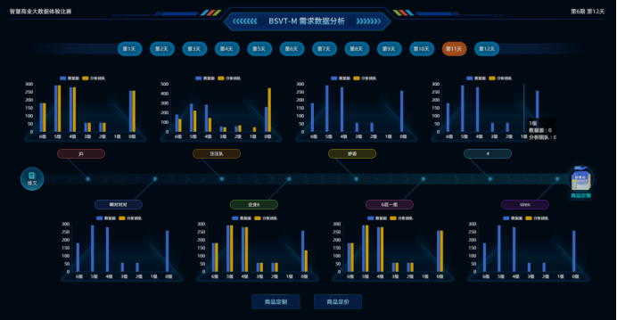 参赛选手扮演大数据企业各个岗位角色,依据甲方需求为甲方客户提供大数据商业分析解决方案。大数据团队通过数据采集、数据管理、数据挖掘等大数据技术手段进行数据预测,完成大数据分析报告;依据大数据分析报告,分析消费者的行为,判断消费者需求,根据消费者需求制定商业模型,通过A/B test的方法进行商业验证,得出最优商业解决方案。