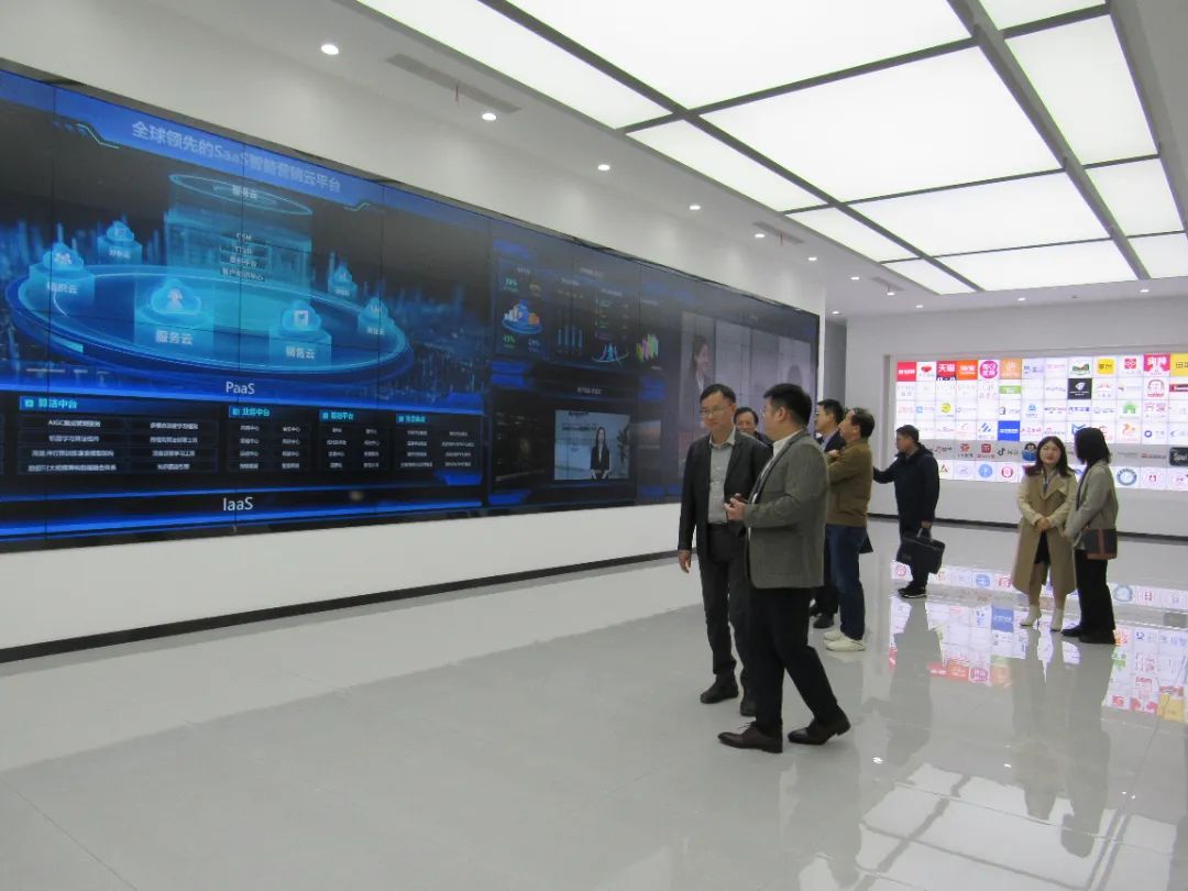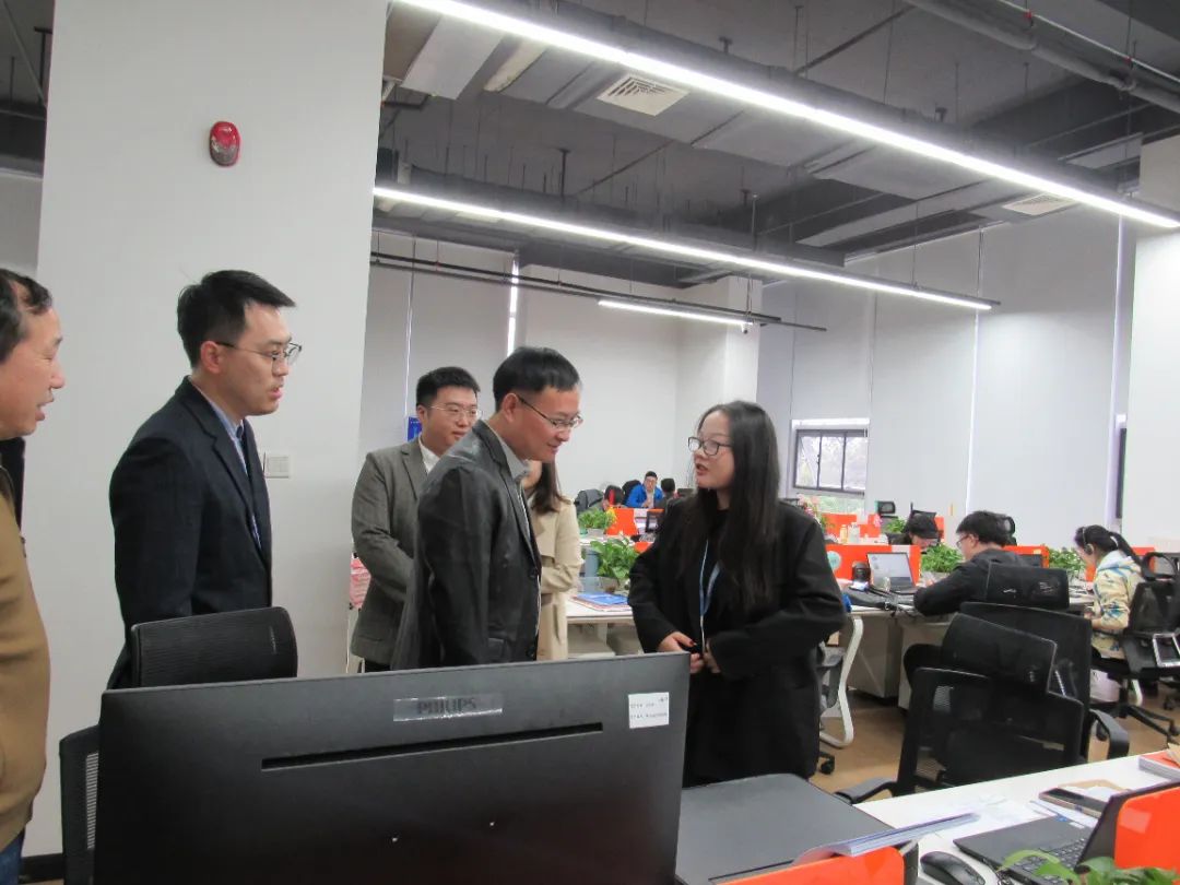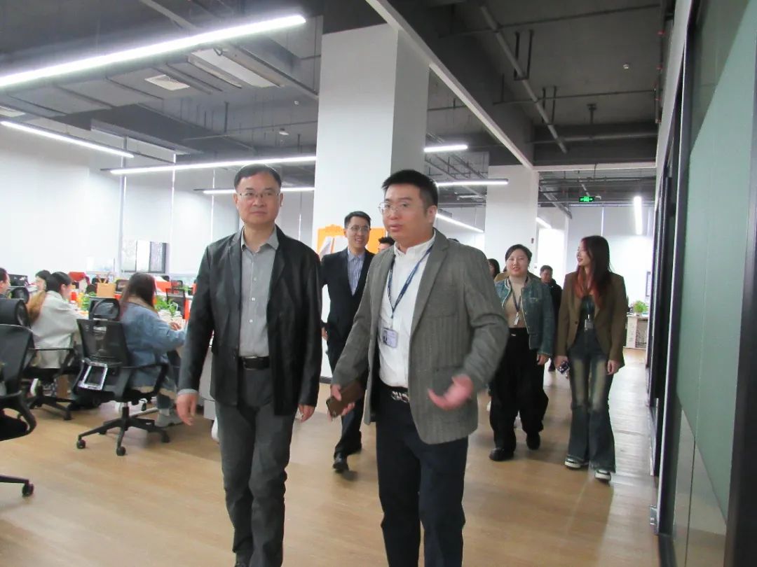 在珍岛集团院校事业部中南部大区总监张彬的陪同下,颜海副校长一行参观企业基本设施了解企业文化、工作环境、运营情况、学生实习情况等。